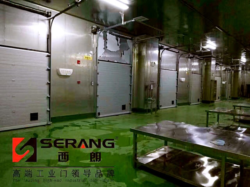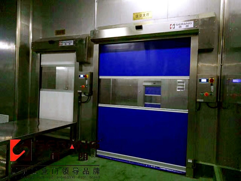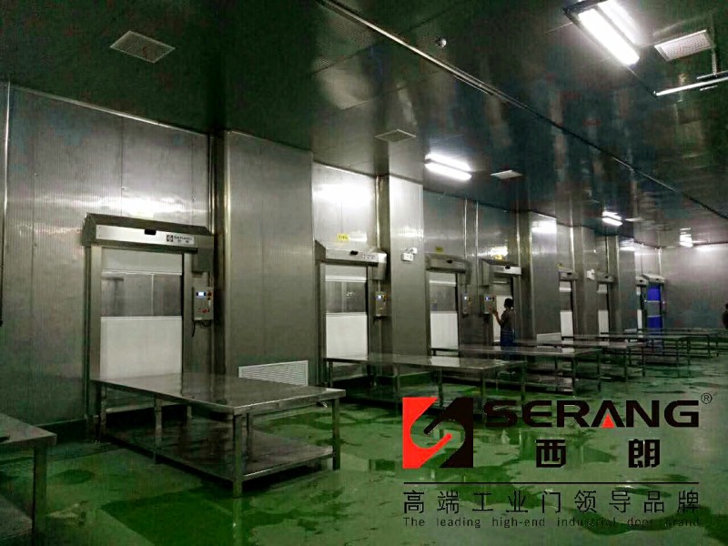 上图:SERANG(西朗)304不锈钢快速门配套输送线联动使用。