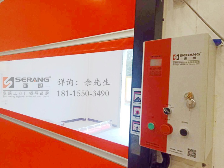 (上图:西朗快速门——定制黑色烤漆一体式门框,门帘选用进口希运门帘,配备德国菲瑞普伺服电控系统)