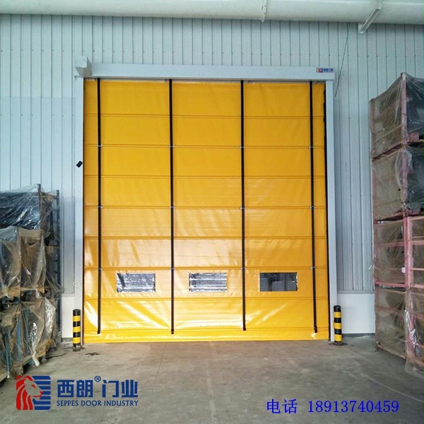 杭州西朗门业生产的PVC材质堆积门用于大尺寸的门洞,PVC快速堆积门的优点:可做大型门、抗风压能力强、开启速度快、每天可频繁开启、密封效果好。