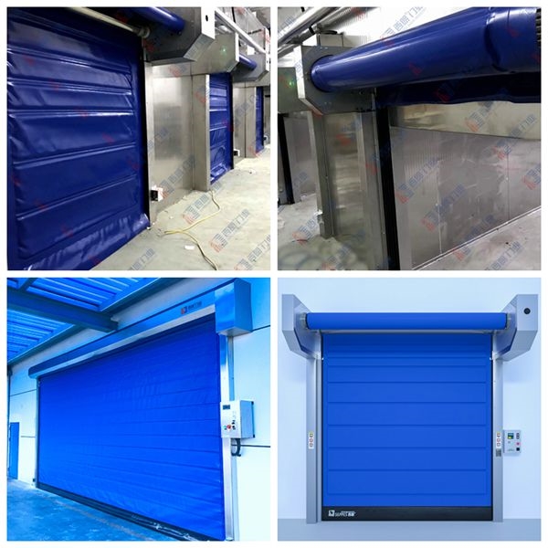 保温拉链快速门采用加厚门帘,内部保温材料为铝箔,并且为了防止门框被低温水冻住,还在内部增加了加热丝,完全解决了客户的疑虑,并且采用的软底兜还能与各种地形保持贴合,保证了密封性。