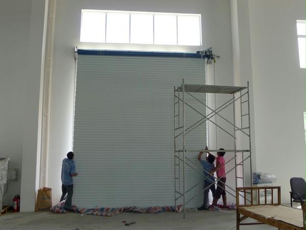 上图:刚刚安装完毕的一樘77铝合金卷帘门