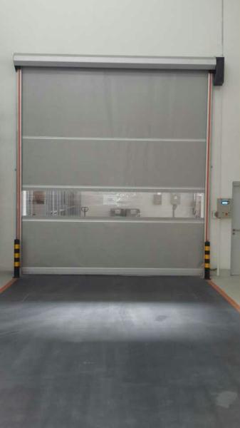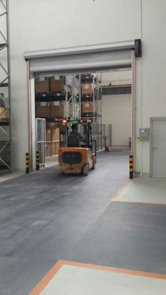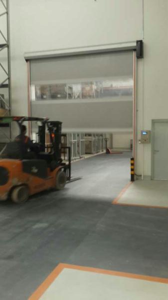 此批铝合金框架快速门,业主选用的是地磁环感应自动开门配置,车间内当有叉车准备从快速门处通过时,车辆进入地磁感应区域后,迅速触发开门信号给西朗伺服控制系统,伺服快速门以1.5米/秒的速度快速开启,车辆顺利通过,车辆通过约几秒后,伺服快速卷帘门自动延时关门,使快速门处于常闭状态,保证室内的密闭效果和洁净度。同时伺服快速门还配有安全电眼保护系统,当人或车辆在门下时,门不关,或者门正在关门过程中时,有人或车辆到门下,触发红外电眼,门体快速反弹至最开位,保证人员及车辆的安全。