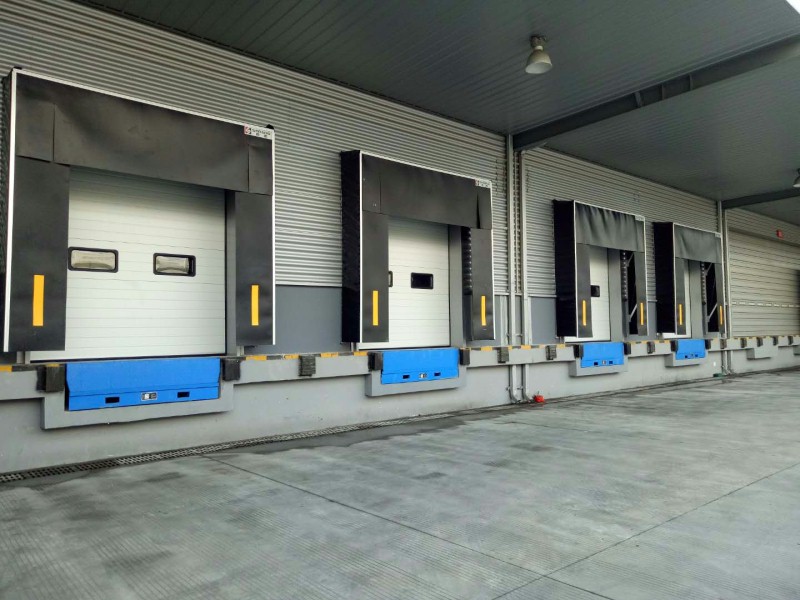 上图:物流出货口外景实图(机械式门封、工业滑升门、装卸货平台)。