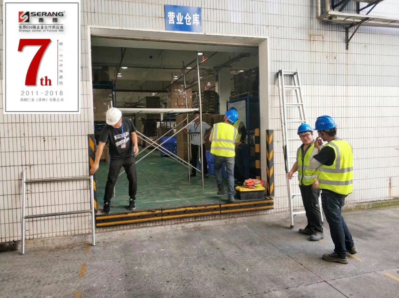 苏州高新区~世界500强某日本企业工厂,工业门整体升级换代工程进场施工,旧门全部拆除,换上SERANG(西朗)新产品。