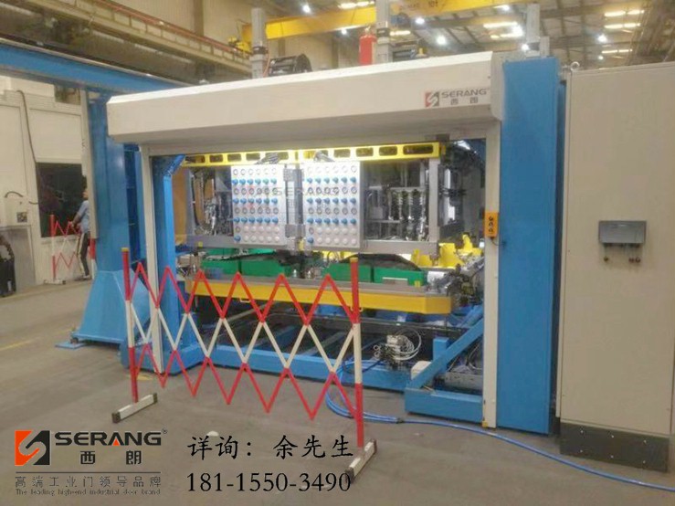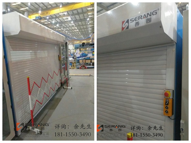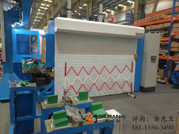 下图:设备房铝合金安全防护门(配置:77型双层中空铝合金门帘,一体式包厢,内置管状电机,三键按钮与急停按钮)