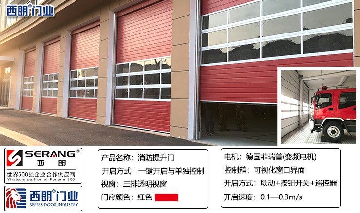 杭州119消防联动提升门主要用在各类消防大队,厂房应急消防场所使用。具有快速开启(一键开启)、隔热、隔音、保温、防盗、抗风等优点。消防提升门可根据建筑结构选择垂直、转弯、斜拉等,不占用室内和两侧的空间,释放门洞空间。