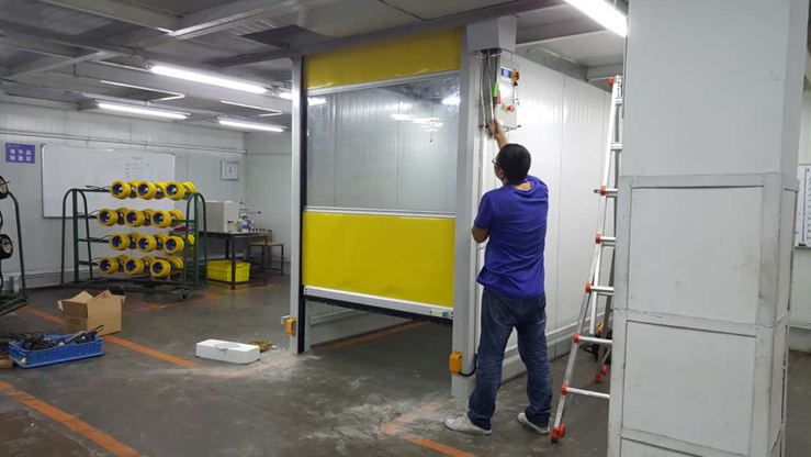 杭州西朗门业生产的手动快速门适用于建筑物内外通道出入口使用。门帘选用高密度聚氯乙烯材料,门布使用有弹性而坚韧的专用高密度聚氯乙烯涂层织物软帘,实现高速开闭(比钢质卷帘门的速度要高约20倍),极大程度的缩短了通道出入口的开放时间,不仅提高了车间内部空调的效率还能将车间外部异物混入率控制在最小限度。大大提高工作效率。为实现安全、卫生、节能的工作环境,为提高产品质量作出贡献。