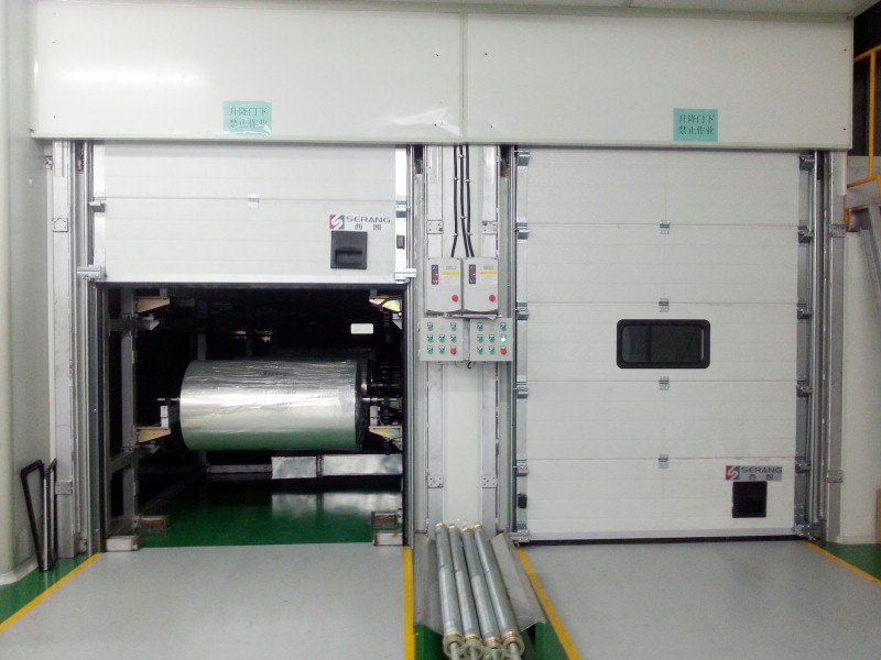 2.工业滑升门可与设备进行联动功能的设置,例如设备间需要出料,当料到达出口时,给门一个开门信号,门体打开,当料完全通过工业门时,再给门一个关门信号,门体自动关闭,更显智能人性化。