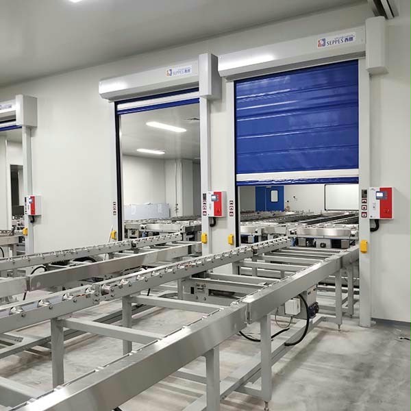 在冷库缓冲间用保温快速门,快速启闭、隔离内外温度,支持高频率进出、自动感应进出,同时有效防尘防虫、恒温恒湿。除了快速卷帘门之外,也可以用不锈钢防撞自由门,符合食品安全要求,耐腐蚀性能好,叉车通行双向自由复位,启闭速度快,密封性能好,每日开启几百次无损耗。