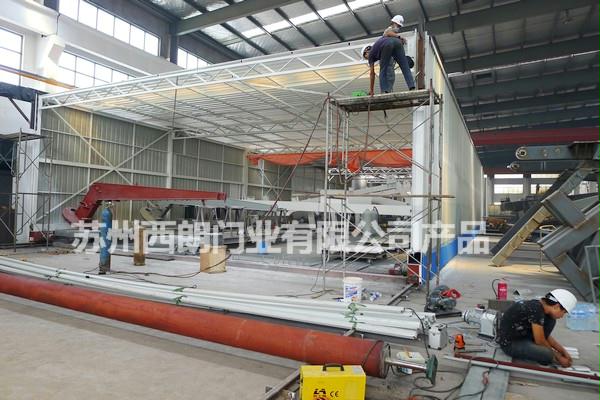 浙江西朗门业生产的12米宽的大型钢制卷帘门适用于:船舶制造企业大型活动房喷涂车间、重型设备车间大型出入口、商场大型出入口等。