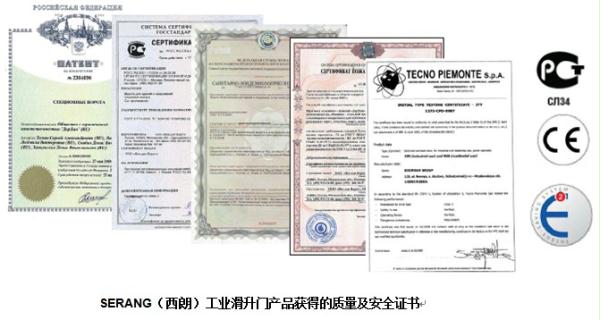 SERANG(西朗)工业滑升门产品获得的质量及安全证书