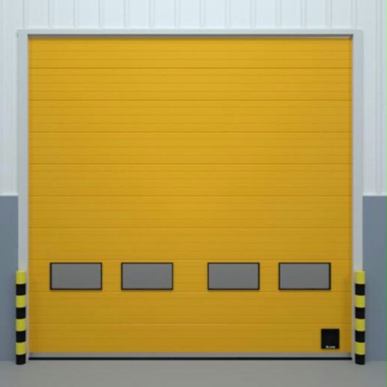 工业提升门随墙面轨道运行,不占用过多的厂房车间空间,且外形美观,为现代化工业厂房首选工业门产品: