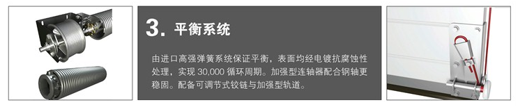 由进口高强弹簧系统保证平衡,表面均经电镀抗腐蚀性处理,实现30,000循环周期。加强型连轴器配合钢轴更稳固。配备可调节式铰链与加强型轨道。