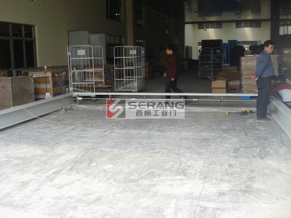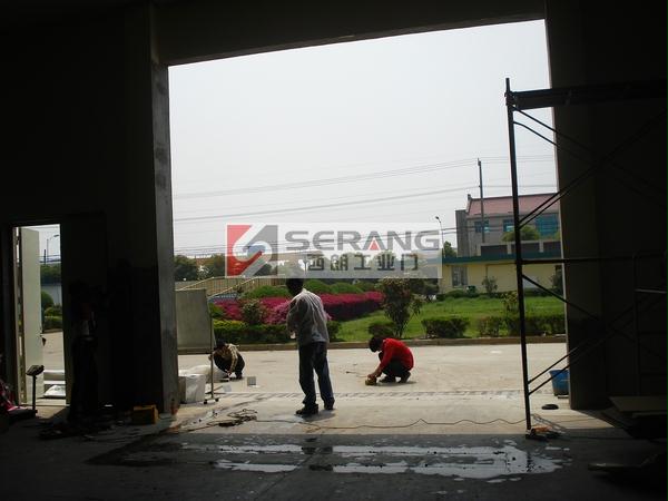 上图为:嘉兴地磁感应堆积快速门,杭州西朗门业安装人员正在切割地磁。