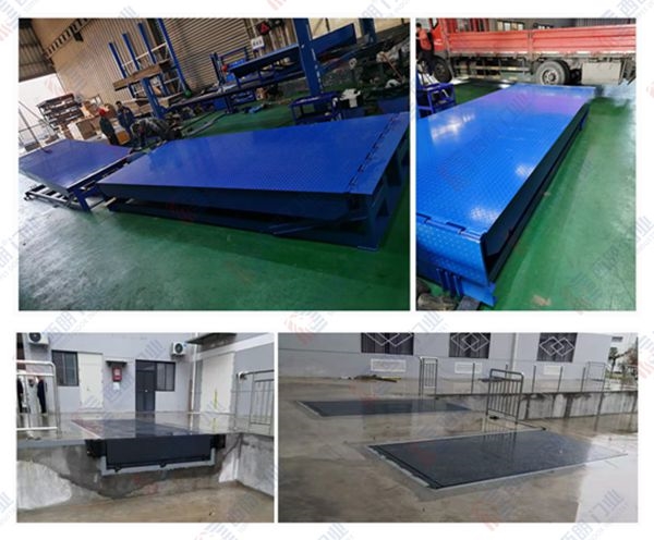 8.将固定液压登车桥放入坑位,通过膨胀螺栓以及焊接将平台与坑位紧密连接。