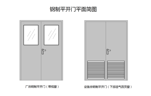 下图为:带视窗的钢制平开门与带百叶窗的平开门示意图: